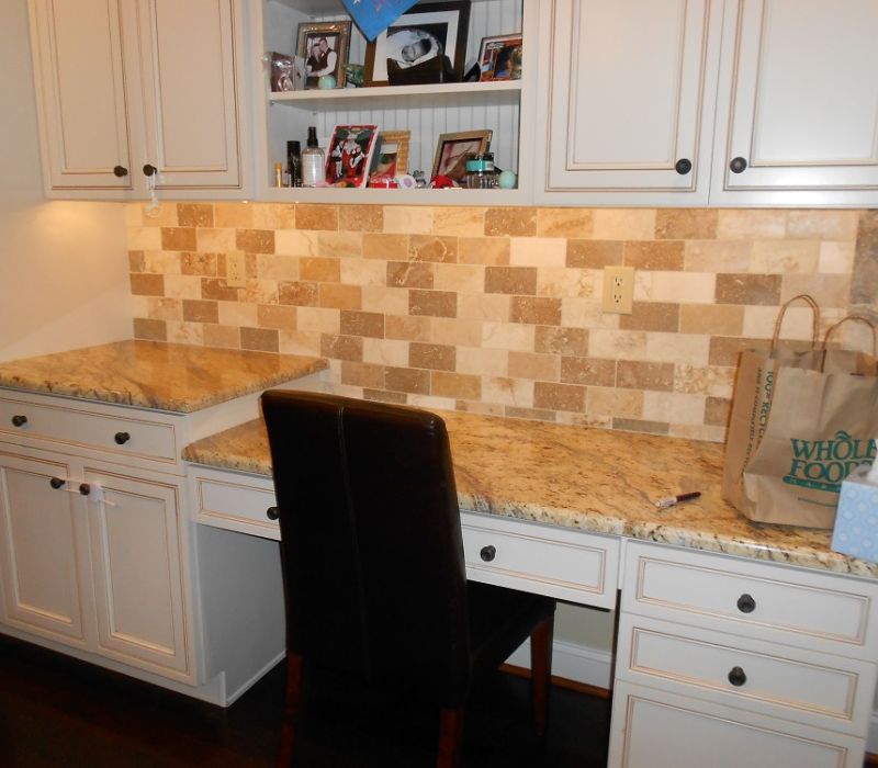 We suggest waiting until the entire kitchen is installed before you select the material for your backsplash. Options are plentiful from the very unusual ceramic, porcelain, glass or metal tiles to the more miniature stone and glass mosaics.